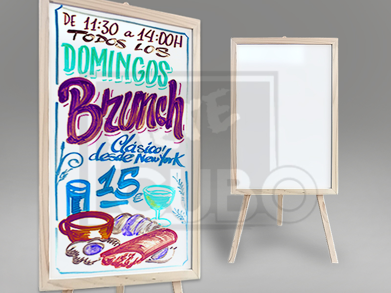 ATRIL Pizarra blanca Natural 60 x 90 cm (útil) x 150 cm (68 x 98 cm terminada) sin barniz